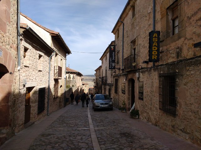 Destacan sus casas de piedra con bonitos balcones bajo las cuales hay unos soportales donde hay varios restaurantes.
