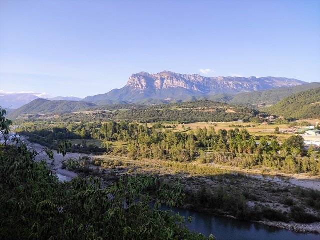 Nuestro rincón favorito de este paseo por Aínsa fue el mirador que se encuentra más al sur de la localidad desde el que se puede admirar la Peña Montañesa y el Río Cinca.